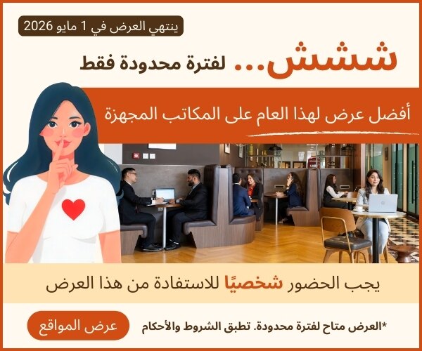 - مع إما مكتب إفتراضي لإدارة شركتك عن بعد، هوتديسك أو مكتب خاص يتسع لشخص واحد أو ٢٠ شخص، يمكنك الإرتقاء بشركتك بمرونة وبدون مخاطر.